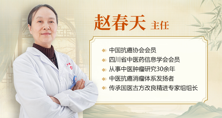 医生简介:赵春天主任,中医世家出身,毕业于成都中医药大学,传承国医古方改良精进专家组组长,中医抗癌消瘤体系传承发扬者,成都中医肿瘤···